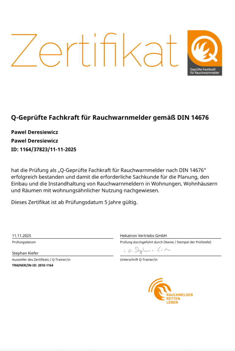 Wartung, Modernisierung, Planung und Montage von Rauchwarnmeldern.